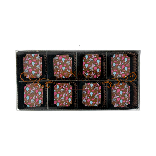 Treat yourself or a loved one to the creamy goodness of our 8-piece Celebration Themed Milk Chocolate Gift Pack, great for any celebration. Each solid piece is made from high-quality milk chocolate, offering a luscious and smooth flavor that's both comforting and satisfying. The beautifully designed box, which changes with every release, adds a touch of charm and surprise to your gifting experience. Ideal for those who cherish the classic taste of milk chocolate in a beautifully presented assortment.