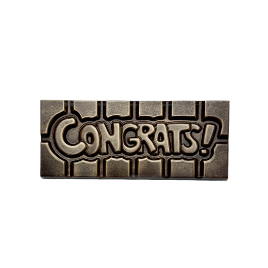 Celebrate achievements with our "Congrats" Dark Chocolate Bar. Made from rich, dark chocolate, this bar offers a sophisticated flavour that's perfect for marking special occasions and milestones.